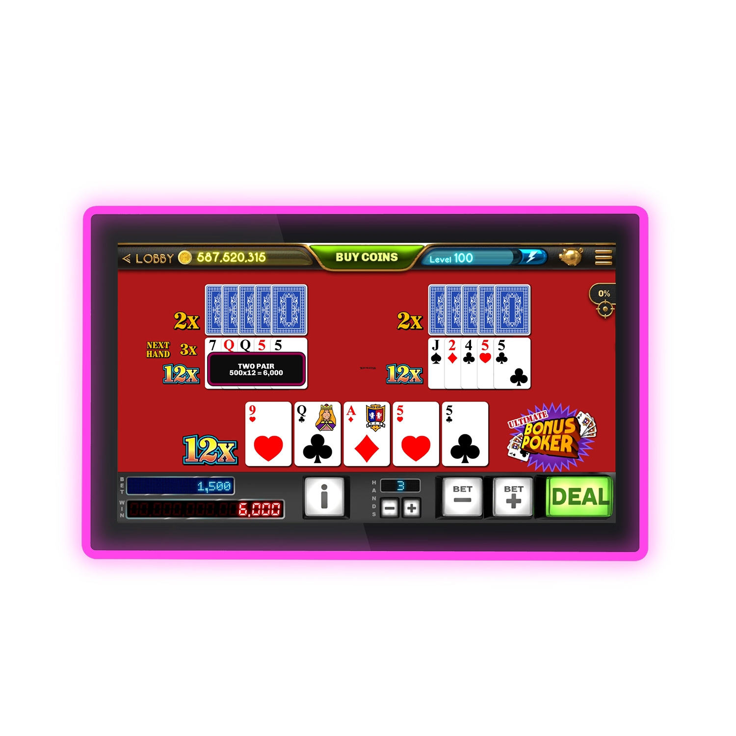This product is a game monitor with a horizontal LED display, capacitive touch screen, and LED frame. It offers interactive gaming experience with features for gaming machines.