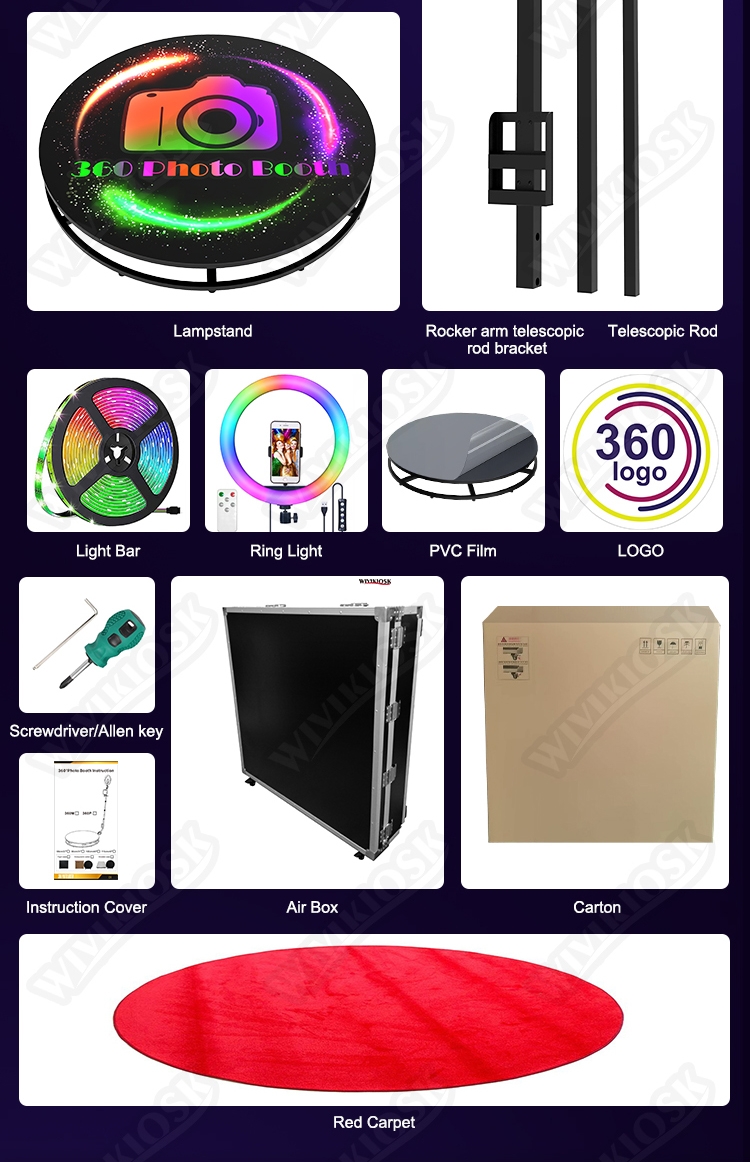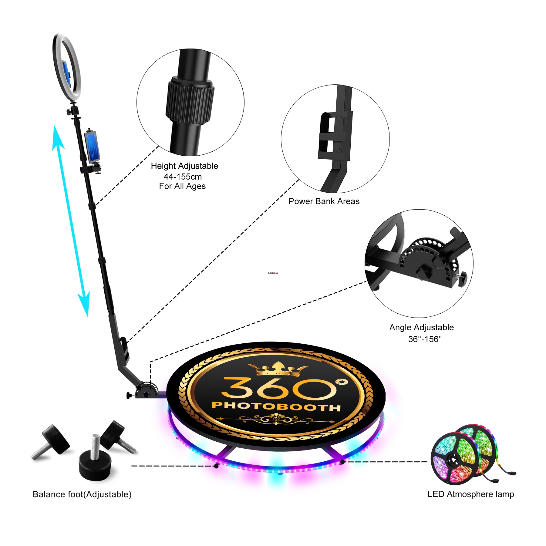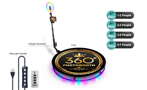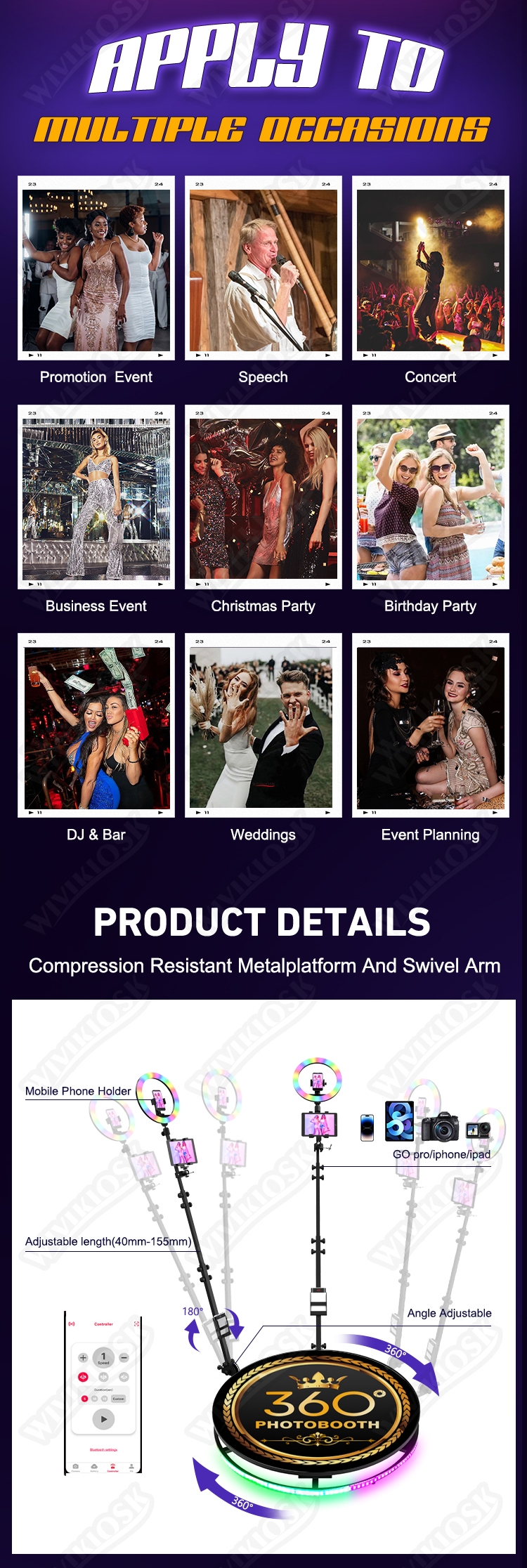 WIVIKIOSK 360 Photo Booth Machine for Parties, with Ring Light Extendable Stand, People Stand on Stable 360 Spin Automatic Camera Booth for Wedding