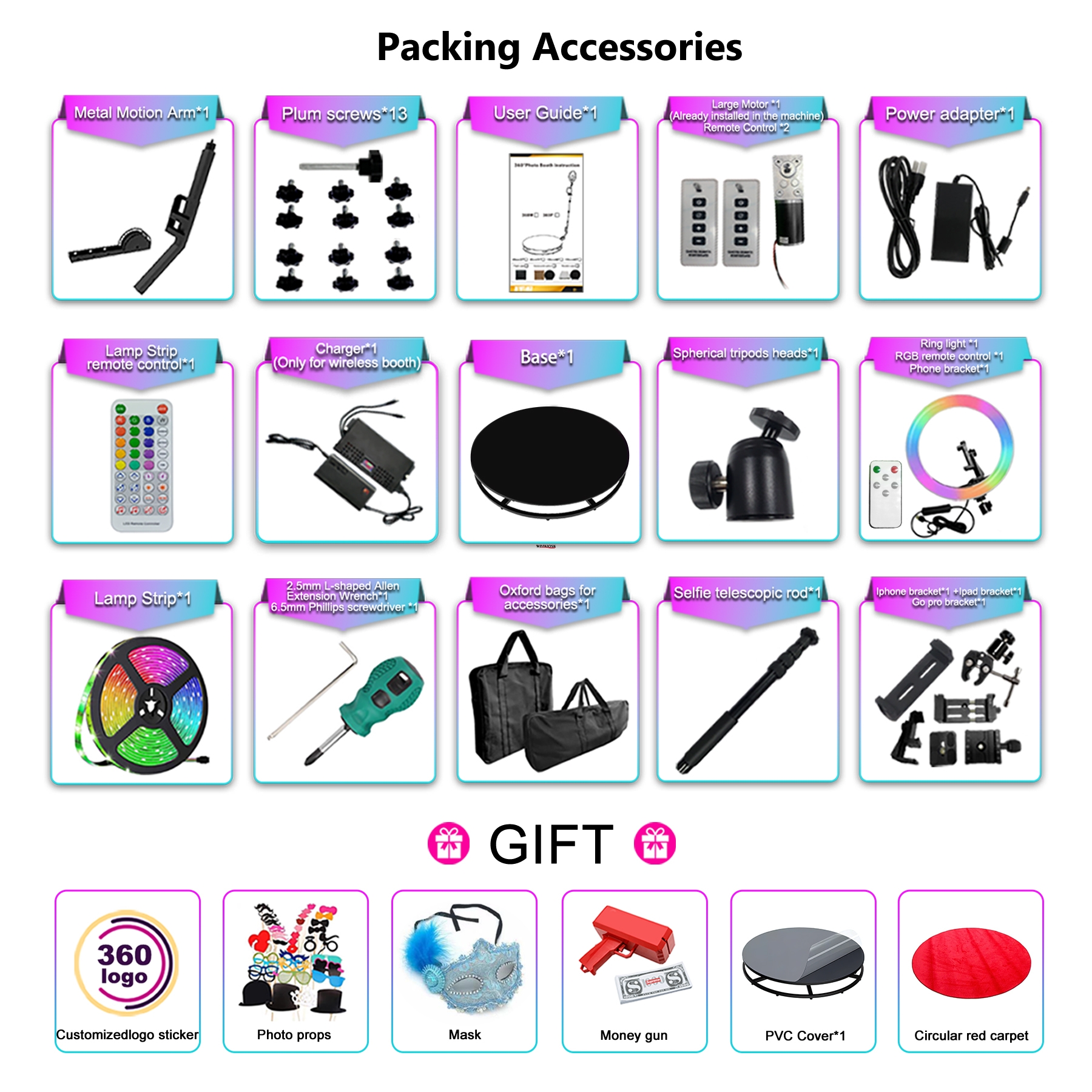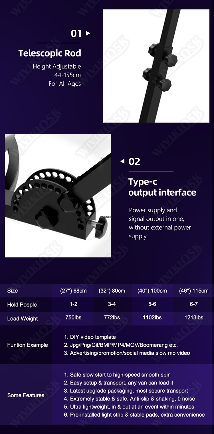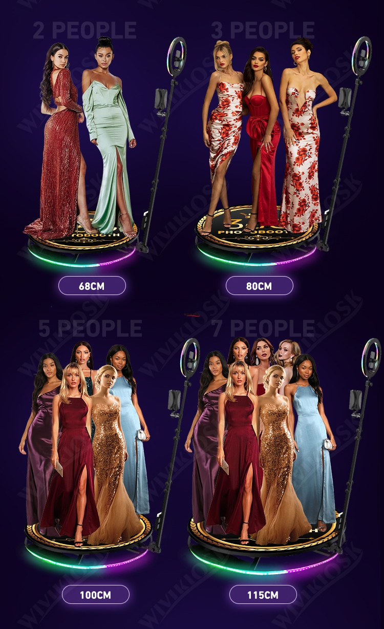 WIVIKIOSK 360 Photo Booth Machine for Parties, with Ring Light Extendable Stand, People Stand on Stable 360 Spin Automatic Camera Booth for Wedding