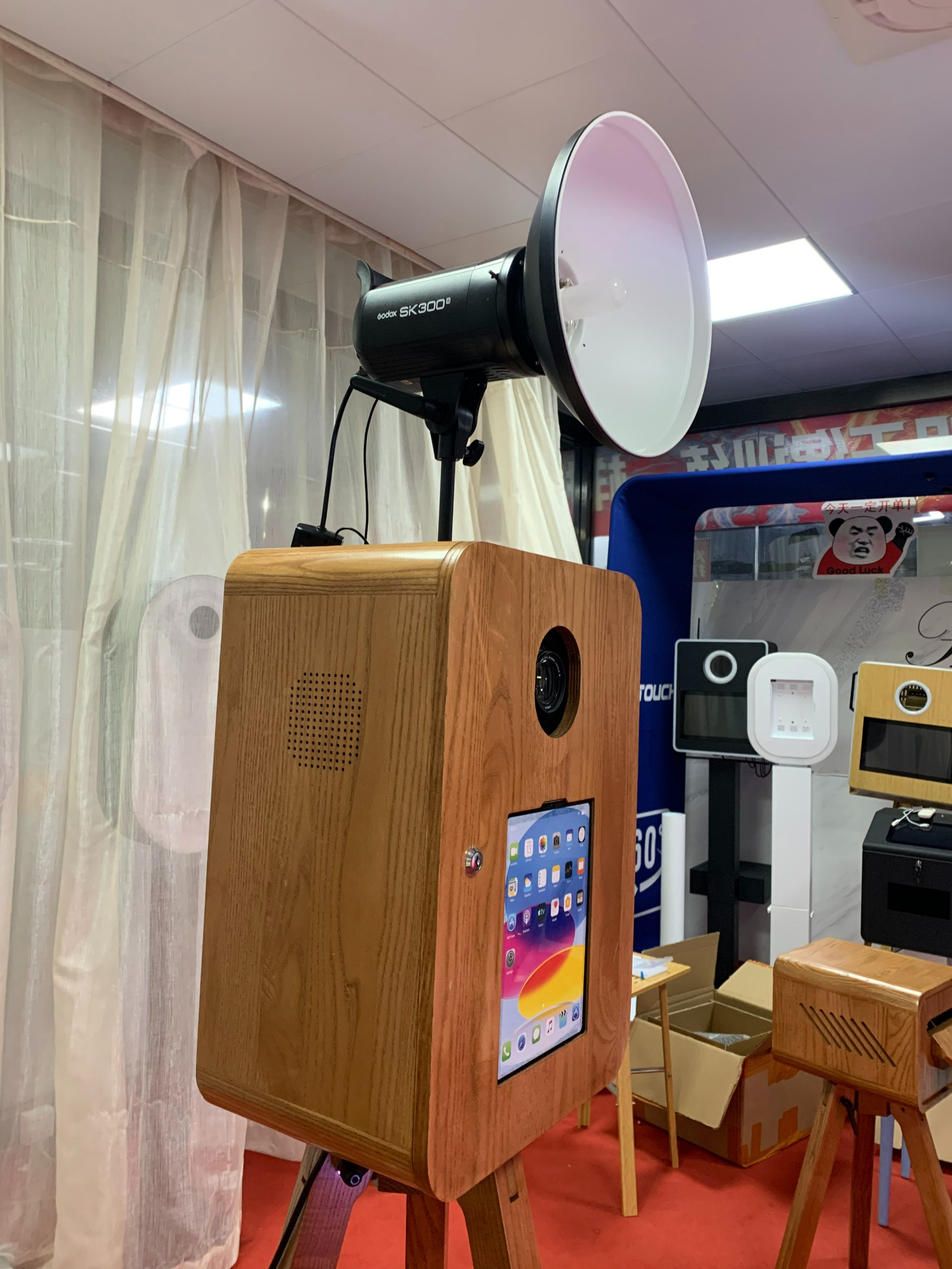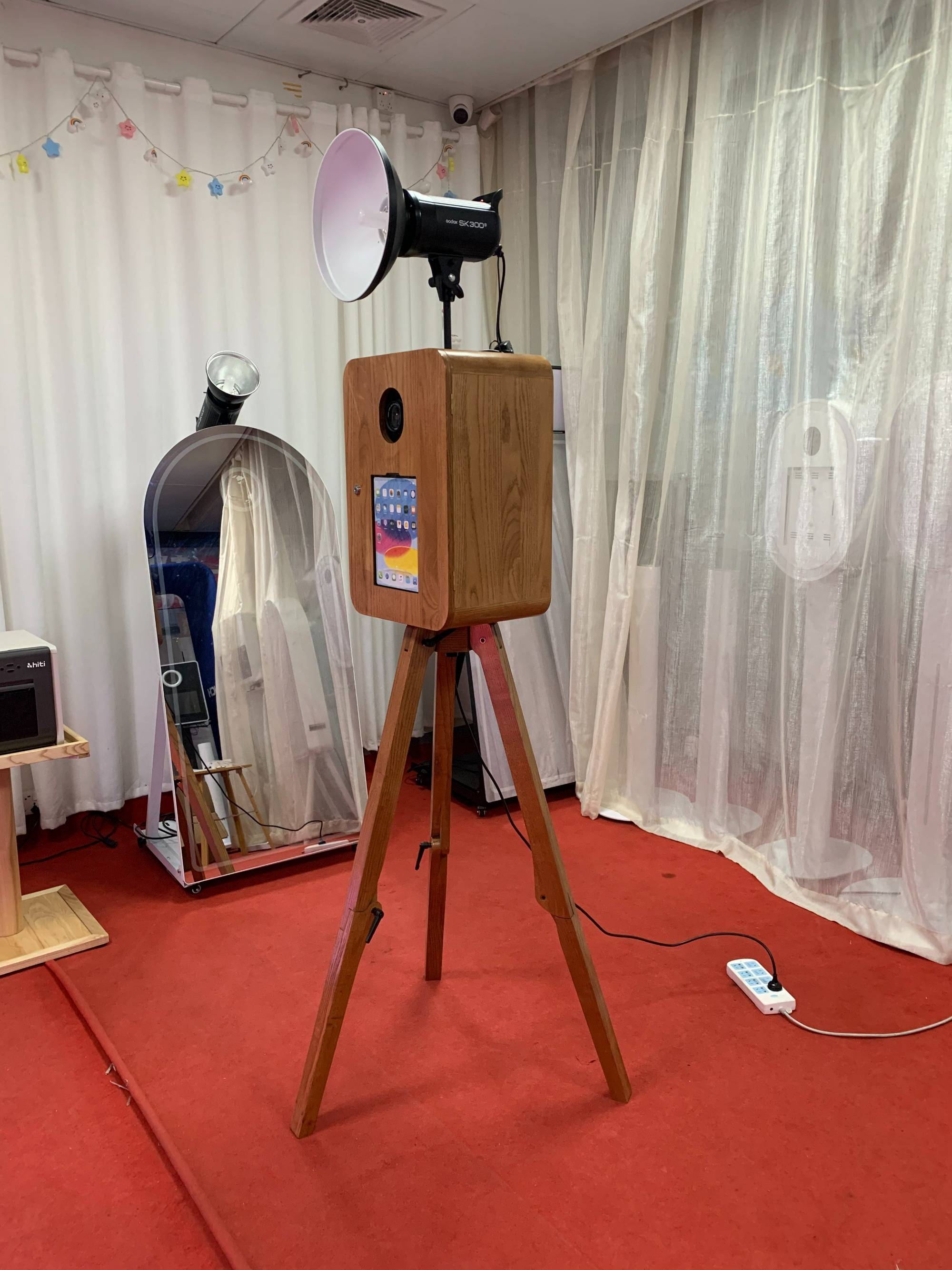 The wooden tripod stand is not merely decorative—it provides exceptional stability and durability. Engineered with adjustable height settings, the booth can accommodate various user preferences and venue requirements. The natural wood finish is treated to resist wear and tear, ensuring the product maintains its elegant appearance even with frequent use.