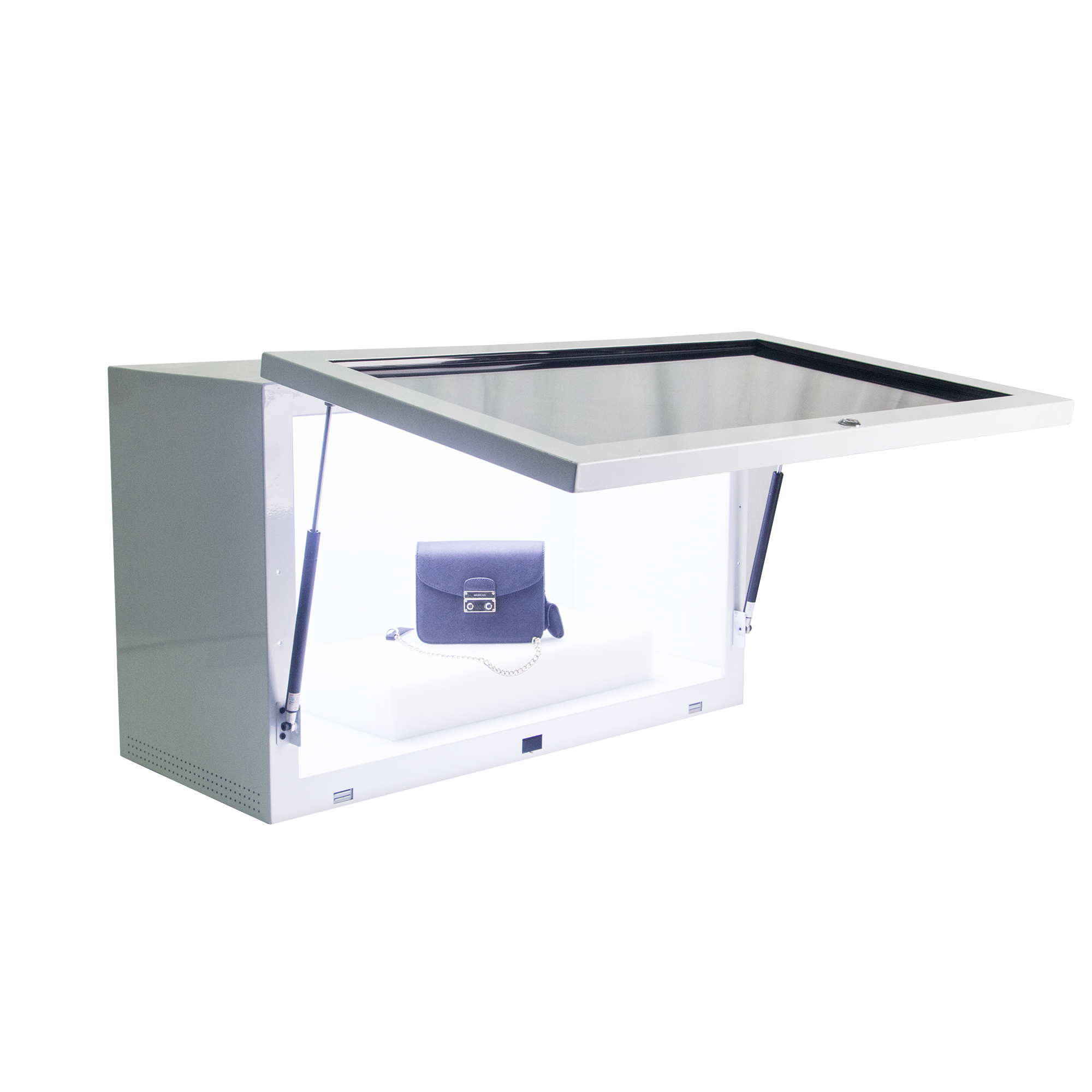 Nope—it’s smarter. Unlike clunky traditional cases, our 55-inch LCD panel floats product details like price, specs, or even 3D animations directly over your merchandise while keeping items 100% visible. Imagine a Rolex glowing with floating specs while thieves can’t even tell there’s a screen.
