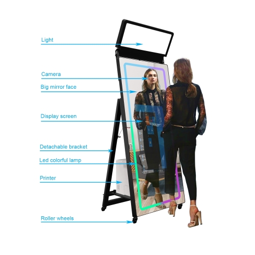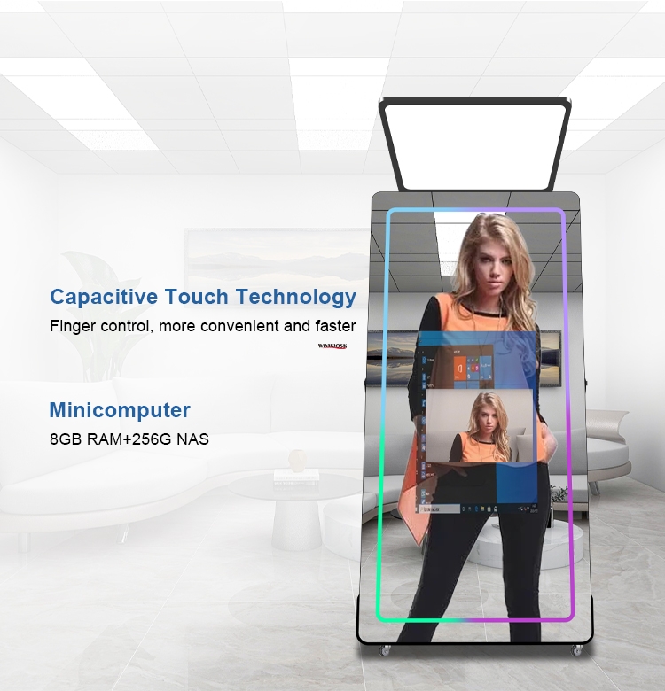 Magic Selfie Mirror Photo Booth 65 Inch Touch Screen Led Frame Mini Camera For Events